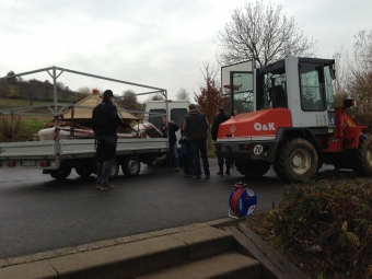 8:45 Uhr - Das Klettergerüst rollt an