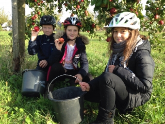 Nun freuen sie sich auf den daraus hergestellten Apfelsaft!