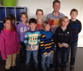 Niederbachem, 12.11.2013. Fast zwei Stunden lang lauschten wir Kinder und Lehrerinnen fasziniert der Präsentation von Fabian Lenks Buch "Falsches Spiel in Olympia" aus der Reihe "Zeitdetektive". Herr Lenk gab uns während des Vorlesens immer wieder viele interessante Informationen zum geschichtlichen Hintergrund, zu den Bildern, die seine Bücher illustrieren und zu seiner Arbeit als Autor. Er las seine Geschichte mit verschiedenen Stimmen vor und ließ uns alle gebannt zuhören. Am Ende durften die Kinder all die vielen Fragen stellen, die sie vorbereitet hatten. Wir erhielten ganz viele Informationen über das Gesamtwerk von Fabian Lenk, das Schreiben, Bearbeiten und Herstellen von Büchern und das Leben und Arbeiten eines Autors. Am Ende gab es großes Lob für die Kinder von Fabian Lenk: er habe noch keine Schule erlebt, in der die Kinder so konzentriert und ruhig zugehört und so viele gute Fragen vorbereitet hätten. Dafür überreichte er jedem Kind persönlich eine Autogrammkarte. Das waren zwei tolle Unterrichtsstunden und wir alle - Kinder sowie Lehrerinnen - wollen jetzt viele Bücher von Fabian Lenk lesen.