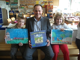 Niederbachem, 04.05.2010. Unter dem Motto " Mach die ein Bild vom Klima - Du und das Klima!" startete die VR Bank auch in diesem Jahr wieder ihren Malwettbewerb. Unsere Schule beteiligte sich unter fachmännischer Leitung von Frau König an diesem Projekt. Julia Gritzner und Moritz Hartmann aus der Klasse 3a heißen die strahlenden Gewinner unserer Schule. Sie erhielten als Preis ein Gesellschaftsspiel, das Herr Heyden von der VR Bank Niederbachem beiden heute persönlich überreichte. Die Bilder und die der anderen Preisträger der Wachtberger Schulen hängen in den nächsten Wochen in der VR Bank in Niederbachem aus.