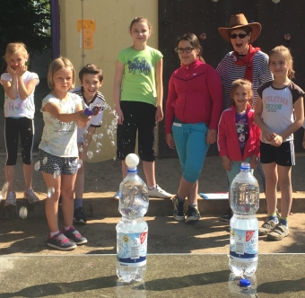 Flinke Räuber, Verzauberte Schatzkarte, Scharfer Schütze und viele andere Stationen waren für die Kinder in der Turnhalle, auf der Wiese und auf dem Schulhof aufgebaut.