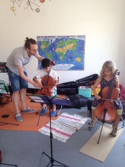 Niederbachem, 07.07.2017. Nach einer kurzen Vorstellung der Streichinstrumente und einer Kostprobe des aktuellen Schulorchesters "Niederbachemer Bogenflitzer" konnten interessierte Kinder die unterschiedlichen Instrumente austesten. Dazu standen drei Instrumentallehrer in drei Räumen bereit.