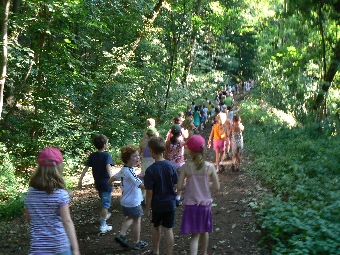 Niederbachem, 14.07.2010. Eine Woche lang haben die Kinder unserer Schule wieder einmal fleißig Spenden für den Sponsorenlauf gesammelt. Es kam ein Summe von 6219, 65 € zusammen. Das Geld wird in diesem Jahr zu gleichen Teilen dem Projekt AGROMED von Herrn Dr. Wagner in Afrika, der Spendenaktion für besonders betroffene Hochwasseropfer in Niederbachem und der Grundschule Niederbachem für Lehr- und Lernmaterialien zugute kommen. Am Montag, den 12. Juli 2010 wollten die Schüler und Schülerinnen ihrem Teil der Vereinbarung nachkommen und zu einem 500-m-Lauf oder zu einem 800-m-Lauf starten. Aufgrund der hohen Temperaturen entschieden wir uns kurzfristig zu einer einstündigen Wanderung durch den schattigen Wald.