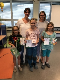 Niederbachem, 01.06.2018. Drei Kinder erhielten eine zusätzliche Auszeichnung: Louisa schaffte den weitesten Kängurusprung, was bedeutet, dass sie die meisten aufeinanderfolgenden Aufgaben richtig gelöst hat. Hanna-Sophie und Jule erreichten den 3. Platz durch eine hohe Anzahl richtiger Lösungen.
