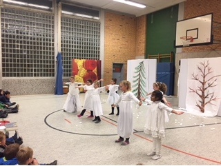 Niederbachem, 14.12.2018. Zu Beginn führte die Musical-AG der Klassen 1 und 2 unter der Leitung von Frau Heuer und Frau Svetlolobov das Stück „Die Zaubernuss“ auf. Die Kinder bewiesen großes musikalisches und tänzerisches Talent und wurden mit tosendem Applaus belohnt. Ein großes Kompliment geht an die Lehrerinnen für die wunderbare Inszenierung.
