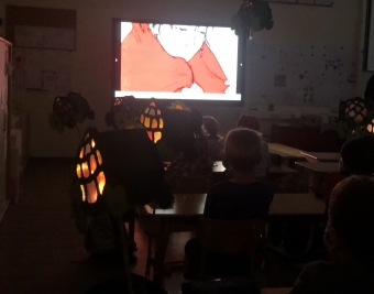 Niederbachem, 12.11.2020. In den abgedunkelten Klassen wurden zunächst erst einmal die leuchtenden Laternen bestaunt.