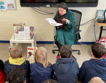 Niederbachem, 26.04.2023. Hierzu kamen Wachtberger Bürgerinnen als Lesepaten mit ausgewählter Lektüre zu uns in die Klassen.