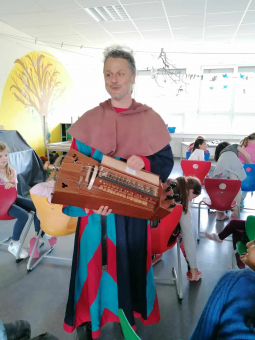Am 20.09.23 kam ein Herr in die 4. Klassen. Er erzählte uns eine Geschichte, in der er uns gleichzeitig Dinge erklärte. Zum Beispiel erklärte er uns den Dudelsack, die Drehleier, die Tastenfidel und das Krummhorn. Am Ende haben wir für ihn einen Mittelaltertanz aufgeführt. Es war sehr toll und ich hoffe, allen anderen hat es auch gefallen.