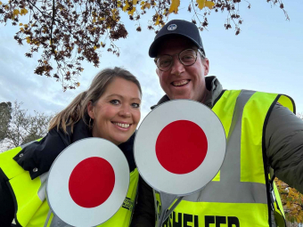 Niederbachem, 12.11.2024. Eine "Verkehrswacht" organisiert durch die Elternschaft soll die Querung der Kreuzung an der Schule für die Kinder sicherer machen. Herr von Uechtritz hatte auf dem Schulfest für die Wiederbelebung des Projekts geworben und konnte viele Eltern für die Mitarbeit gewinnen.